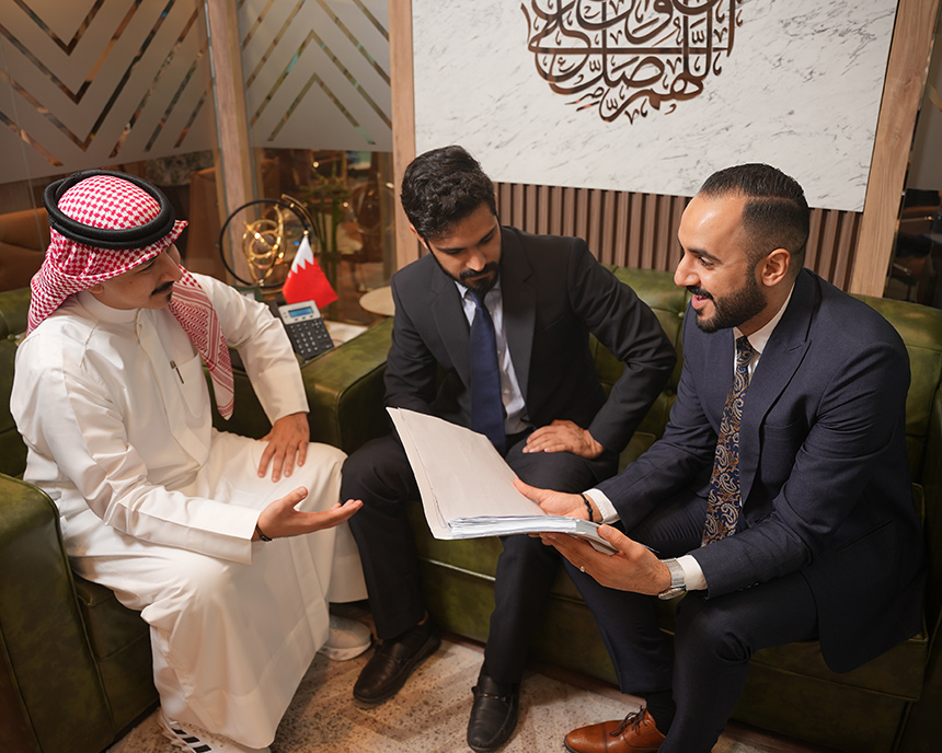 صور منوعة لفريق عمل مجموعة بن يوسف للتحكيم التجاري والمحاماة والإستشارات القانونية في مكتب المجموعة بمرفأ البحرين المالي